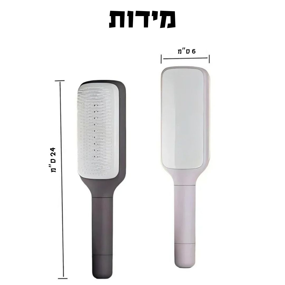 ידית מסתובבת לשליטה מלאה 🔄 – מסרק טלסקופי עם ידית מסתובבת שמאפשרת לשלוט בעומק וסידור הזיזים. לחצנים מובנים מקבעים את המצב הרצוי לניקוי שיער בקלות.