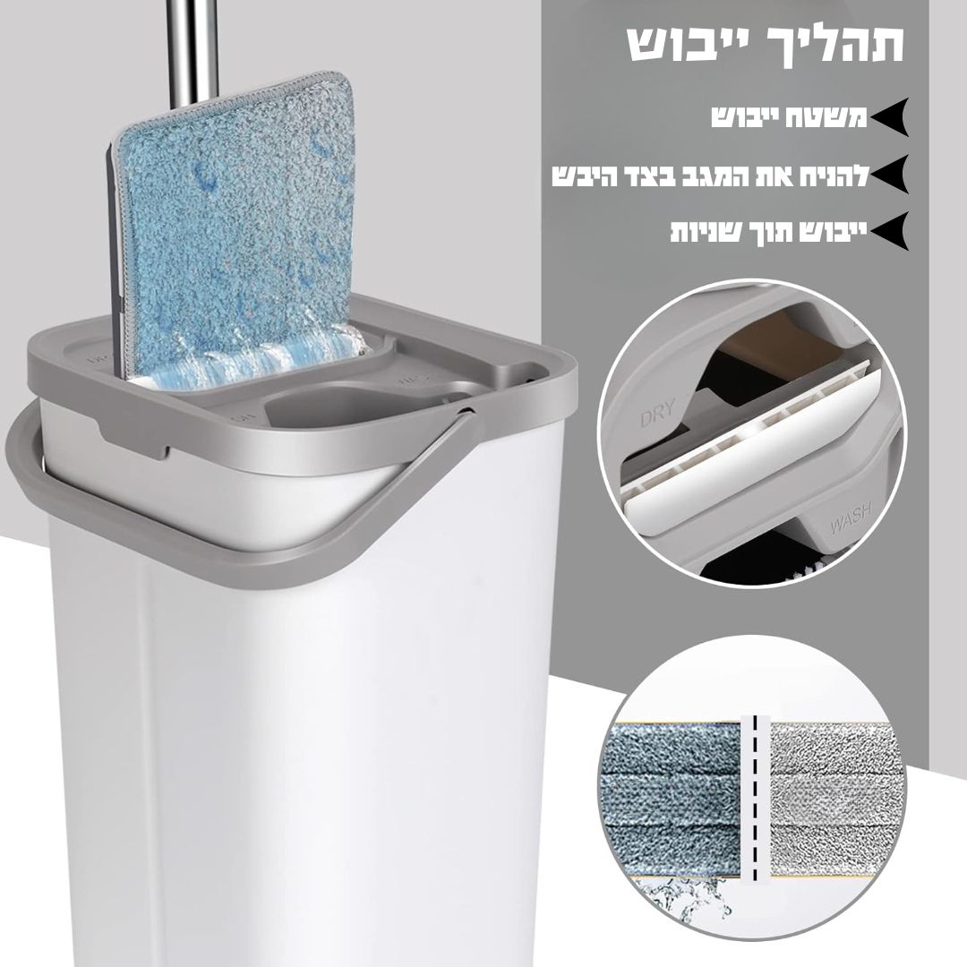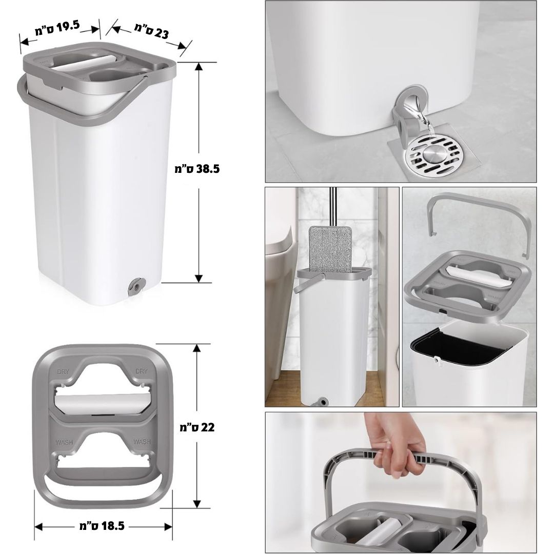 דלי בעל שני תאים נפרדים מאפשר ניקוי וייבוש ללא מגע עם מים מלוכלכים, כך שתוכלו לשמור על הידיים נקיות בזמן שהמגב עושה את כל העבודה.